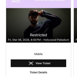 Restricted Hollywood Palladium Friday March 6$115Murrieta, CA