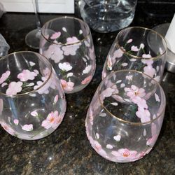 Set of 4 Cherry Blossom Stemless Wine Glasses Gold Rim$10Perris, CA