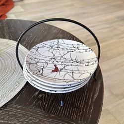 Appetizer plates and metal holder$7Trabuco Canyon, CA