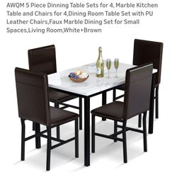 AWQM 5 Piece Dinning Table Sets for 4, Marble Kitchen Table and Chairs for 4$90Riverside, CA
