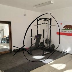 Bench press/squat rack with 7ft 45lbs bar and 250lbs of Olympic weights$300Moreno Valley, CA