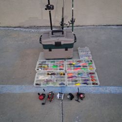 3 Fishing Poles, Tackle Box. An 5 Reels$70Murrieta, CA