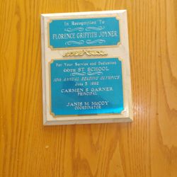 Award To Florence Griffith Joyner From 66 Street School For Service And Dedication For Reading Olympics June 5 1992 $400Moreno Valley, CA