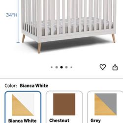 5 In 1 Convertible White Crib With Wheels With Mattress $150Temecula, CA