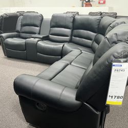 New Reclining Sectional . Black Leather . 111” X 98”. Free Delivery !$1,500Menifee, CA
