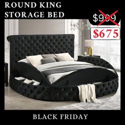 Round Bed - Black King Size Bed With Button Tufted Fabric$675Riverside, CA