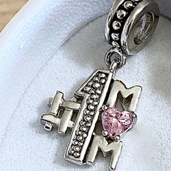 2 Dangle Charms For Pandora Bracelet No.1mom And Pink Murano 925 Sterling Silver $26Irvine, CA