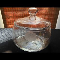 Vintage covered candy dish with etched flowers$12Corona, CA