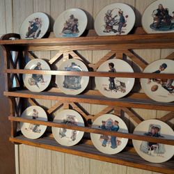 Beautiful Custom Wood Plate Rack with 12 Norman Rockwell Collectible Plates In Excellent Condition $400Lake Forest, CA