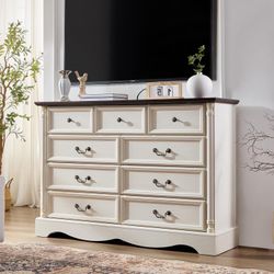 9 Drawers Dresser, 54" Wide Farmhouse Chest of Drawers with Charging Station, Distressed Finish Design, Modern Storage Dressers Organizer TV Stand$145Corona, CA