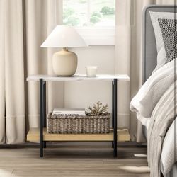2 Tier End Table with Metal Frame, Rectangular Side Table Faux Marble Top Bedside Nightstand with 2 Wood Open Storage Shelves for Bedroom Living Room $45Riverside, CA