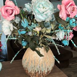 Artificial Silk Flowers Floral Centerpiece Arrangement In Ceramic Glaze Base (6)$30Riverside, CA