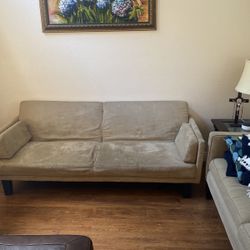 Tufted Beige Linen Fabric Futon Sofa Nailhead Trim Firm Price $760 Financing Available $760Moreno Valley, CA