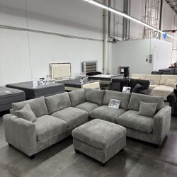 Brand New Grey Super Plush Corduroy Sectional Sofa w Ottoman $669Moreno Valley, CA