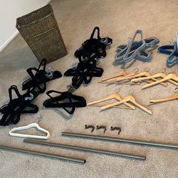 Full Closet Setup – 160+ Velvet Hangers, Wood Hangers, Rods, Wicker Hamper$50Riverside, CA