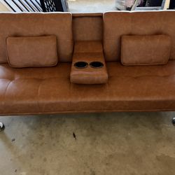Camel Faux Leather Futon Sofa$339Riverside, CA