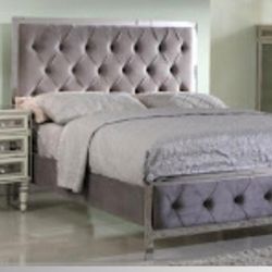 Grey King Size Bed - Modern Style Beds Soft Lux Fabrics$750Riverside, CA