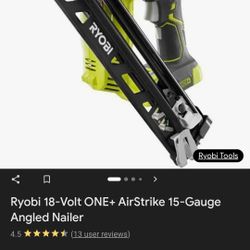 Ryobi Airstrike Nailer 15 Guage. Retails For $200 After Taxes. $100Oceanside, CA