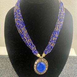 Beautiful Blue & Gold Colored Beaded Pendant Necklace $10Irvine, CA