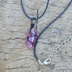 Wire Wrapped Pink & Blue Aura Quartz Cord Necklace $15Riverside, CA
