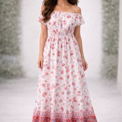 Floral Maxi Dress L Off Shoulder White Red Pink Boho Summer Sundress Beach$14Moreno Valley, CA