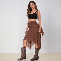 SHEIN Ruched Asymmetrical Skirt Brown Mesh Y2K Boho Western Large NWT$18Riverside, CA