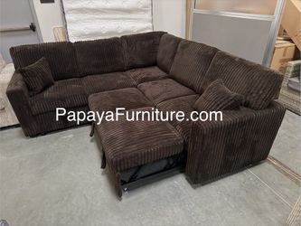 New! Plush Chocolate Sectional Sofa Bed With Storage, Brown Sectional, Sofa, Couch, Corduroy Sectional Couch With Pull-out Bed, Sofabed, Sleeper Sofa $699Corona, CA