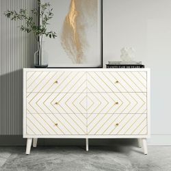 White 6 Drawer Dresser for Bedroom, Wide Modern Chest of Drawers with Gold Pulls, Wood Double Storage Cabinet for Living Room, Nursery, Entryway$150Menifee, CA