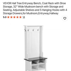 NEW Hall Tree Entryway Bench, Coat Rack with Shoe Storage$100Temecula, CA