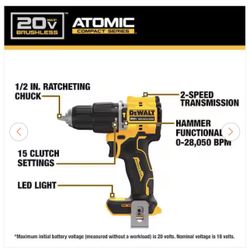 DEWALT ATOMIC 20-Volt MAX Brushless Cordless 1/2 in. Hammer Drill (Tool-Only)$120Vista, CA