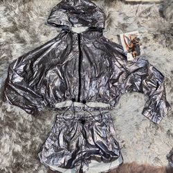 Windbreaker long sleeve with windbreaker Shorts size small set two piece sexy NWT metallic Grey$25Corona, CA