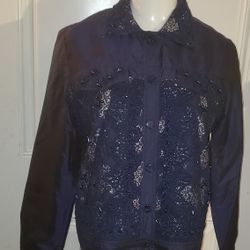 Coldwater Creek Navy Blue Long Sleeve Sequin Embellished Blazer/Jacket (Size XS)