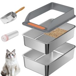 Stainless Steel Sifting Litter Box with Lid, Large Sifting Cat Litter Box for Pine Pellets & Big Cats,Metal Pellet Sifter Litter Pan System for Odor C$45Rancho Cordova, CA