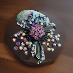 Vintage Gold-tone Aurora Borealis Pink Rhinestone Flower Brooch$39Sacramento, CA
