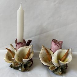 Pair of Vintage Italian Bassano Porcelain Candle Holders Featuring Calla Lilies and Roses$85Roseville, CA