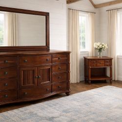 Traditional King Bedroom Set - Dresser w/ Mirror & Nightstands & bed bench - Solid Wood$1,000Sacramento, CA