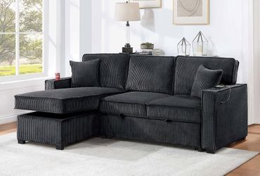 NEW Modern Black Fabric Sectional Sofa with Storage Chaise Reversible Left Right Pullout Sleeper Bed Ashley IKEA style BIG Couch Discount Beige SALE$415Riverside, CA