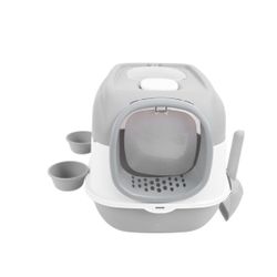Cat Litter Box, 15.7 x 22 x 15.7in Proof Cats Litter Pan Tray Covered Kitty Litter Box with 2 Feeding Bowls Litter Scoop for Cats (X153)$30Rialto, CA