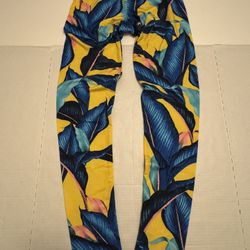 Pre Owned Excellent Adidas Originals Leggings Tropical Floral Printed Blue Yellow Women Size Medium$30Moreno Valley, CA