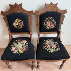 Antique Victorian Eastlake-style set of 2 side chair with a needlepoint seat and back$199Palm Springs, CA