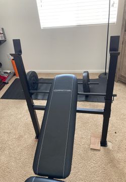 Competitor chest press and leg extension bench with barbell$200Riverside, CA