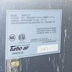 Turbo Air M3R72-3-N 77 3/4" Three Section Reach In Refrigerator, (3) Left/Right Hinge Solid Doors, 115v$4,000Fontana, CA