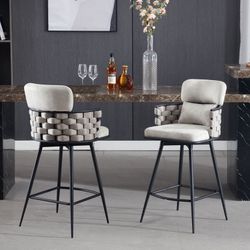 BFZ 26" Bar Stools Set of 2 Counter Height Barstools Modern Bar Woven Bar Chair with Lumbar Pillow for Kitchen Island, Bar Counter, Pub, Dining Room,C$80Fontana, CA