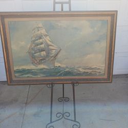 Large Vintage Framed Ocean Sailing Sbip The Sea Eagle Lithograph On Board By James Mitchell $199Menifee, CA