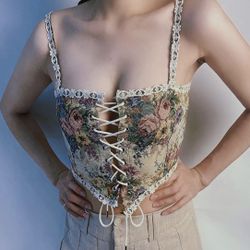 Small Vintage Floral Corset for Women Y2K Cute Camisole Vest Eyelet Bustier Top Sexy Going Out Bodycon Tank Top Clubwear$12Fontana, CA