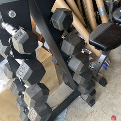 Dumbbells weights 3-45lbs plus rack 263lbs total$220Moreno Valley, CA