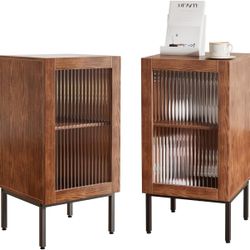 Set of 2 End Table, Farmhouse Sofa Table with Glass Door, Side Tables for Living Room, Bedroom, Brown$120Fontana, CA