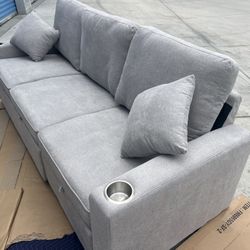 New Couch W Pullout Bed. Grey Chenille. 82.5x33x33H. Free Delivery!$600Redlands, CA