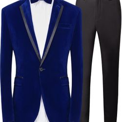 Men's 2 Piece Velvet Suit Peak Lapel One Button Slim Fit Tuxedo Blazer Party Dinner Jacket & Pants$100Lake Elsinore, CA