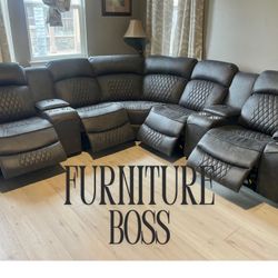 Furniture- 5 Pc Real Leather Sectional With 2 Power Recliners- Danvors $1,299Riverside, CA